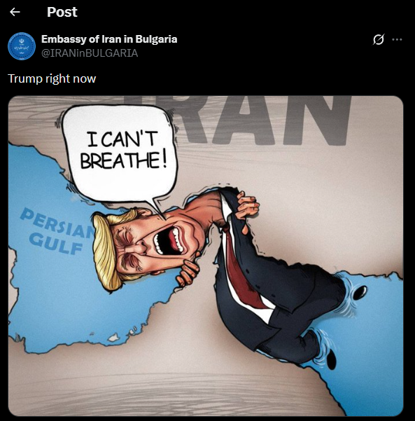 The Iranian Embassy in Bulgaria has joined a wave of cheeky pushback from Iranian diplomatic missions by publicly mocking President Donald Trump’s strongly worded Easter Sunday threat over the Strait of Hormuz.