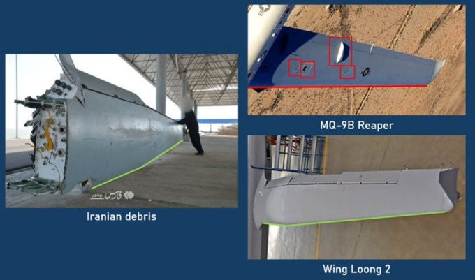 **Iranian state media reported that local fishermen recovered wreckage of a downed U.S. MQ-9 Reaper drone in the Persian Gulf near Bushehr province. However, open-source intelligence (OSINT) analysts, including Fabian Hinz (@fab_hinz), have identified the debris as almost certainly belonging to a Chinese-made *Wing Loong II* (also known as Pterodactyl II) unmanned aerial vehicle — a platform operated by Saudi Arabia and the United Arab Emirates, not the United States.**