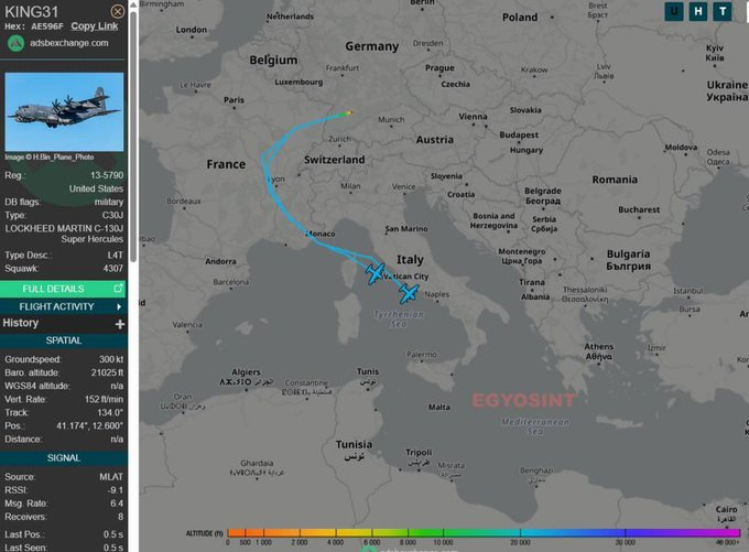 JUST IN: Two U.S. HC-130J Combat King II Rescue Tankers Depart Stuttgart for Middle East — Search for Missing F-15E Crew Member Remains Active