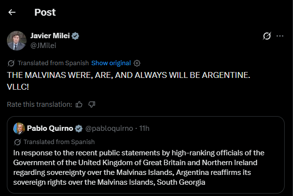 “THE MALVINAS WERE, ARE, AND ALWAYS WILL BE ARGENTINE.” — Javier Milei, President of Argentina