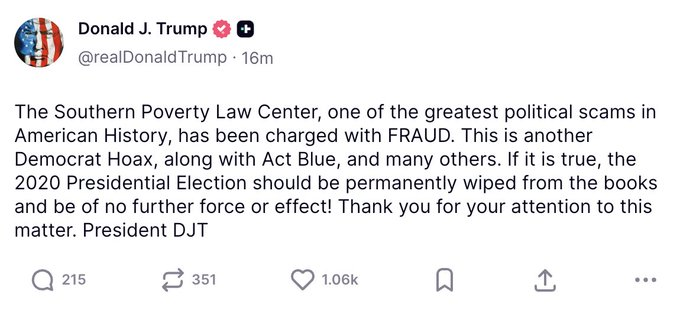“The 2020 Election should be wiped from the books permanently. It was a disaster, a catastrophe, the crime of the century. We cannot let this happen again. We must fix our elections NOW!” — Donald Trump