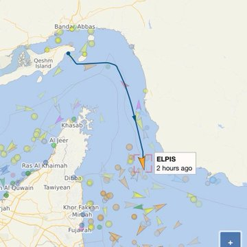 - Elpis: A U.S.-sanctioned tanker that had docked at an Iranian port appears to have stopped off the Iranian coast, potentially awaiting instructions .